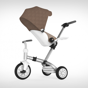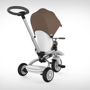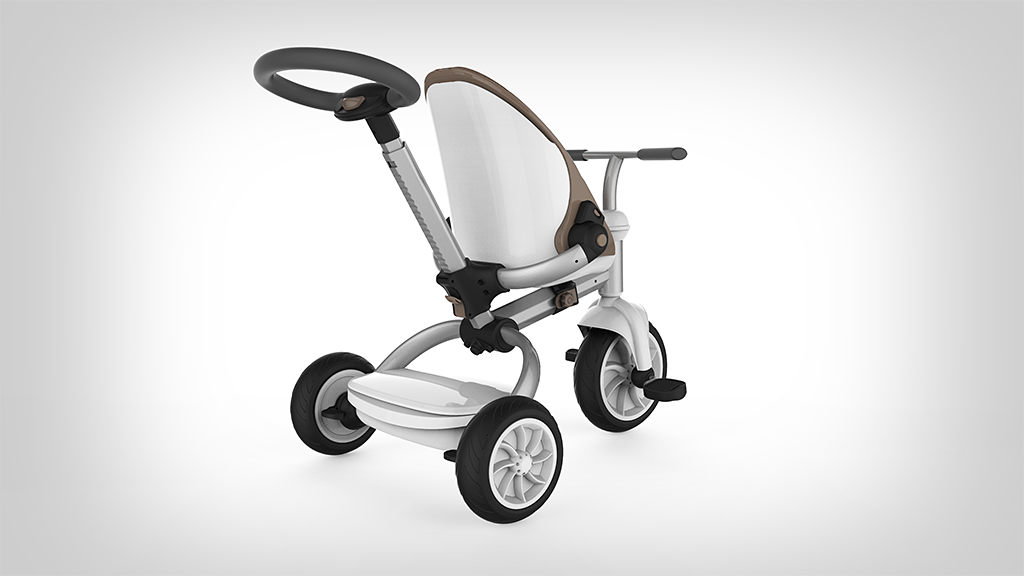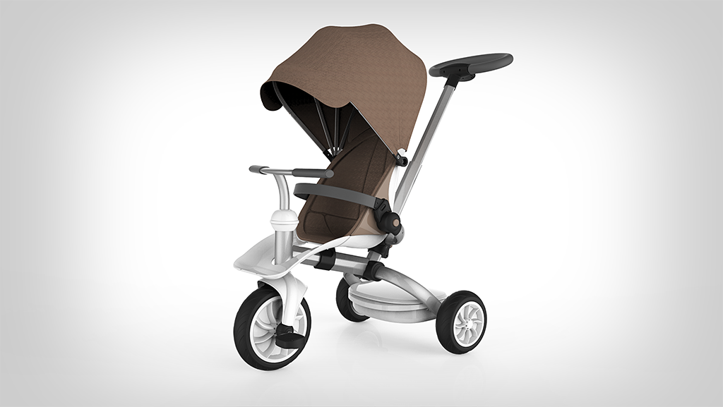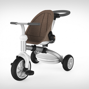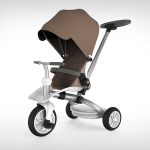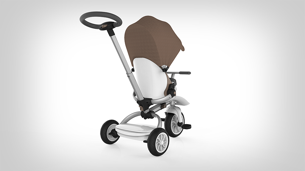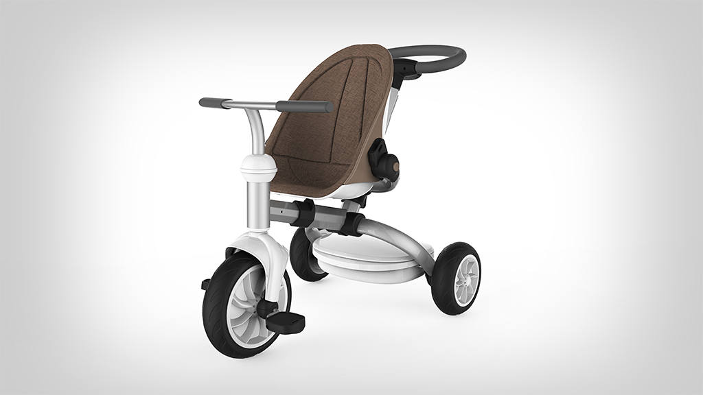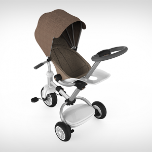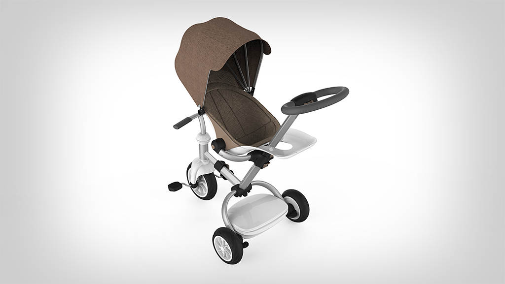 这款童车的设计从出生到学龄前期儿童的不同阶段的生理及心理需求出发,一站式成长三阶段,适合不同年龄段的儿童使用,尽量延长儿童产品的使用寿命。后壳整体成型,充分体现安全感。前置搁脚板可以有效的保护宝宝的脚部;座椅内部材料触感柔软细腻;车架采用高密度航空铝材,表面经阳极氧化和抗划伤处理,坚固、轻便、耐用。遮阳棚材料透气防晒,不易褶皱,可实现多档调节,而具有防水功能。